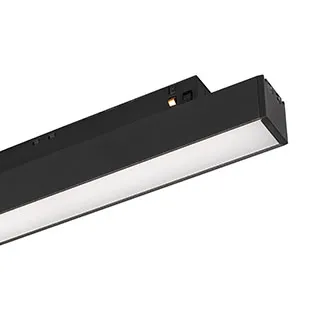 Светильник для магнитных треков MAG-ORIENT шириной 26 мм, с управлением DALI. Мощность 12 Вт, св. поток 980 лм, 82 лм/Вт, теплый 3000 K, CRI>90, угол 100°, напряжение питания 48 В. Черный прямоугольный корпус из металл, экран поликарбонат, степень защиты IP20. Размер: длина 352 мм, ширина 22 мм, высота 42 мм. Монтаж на трек MAG-ORIENT. Пульсация <1%.