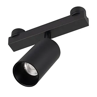 Светильник ART-INBELT-SPOT-R56. Мощность 15Вт, св. поток 1406 лм, 94 лм/Вт, изменяемая цветовая температура 2700-6500 К, CRI>92, угол 34°, напряжение питания 48 В. Черный фигурный корпус из алюминия, экран поликарбонат. Степень защиты IP20.