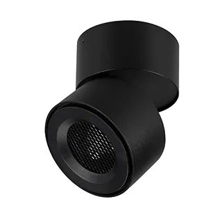 Накладной откидной поворотный светильник с изменяемой цветовой температурой. Мощность 12 Вт, св. поток с решеткой honeycomb 750 лм, св. эффективность 62 лм/Вт, теплый 2700 K, теплый 3200 K, дневной 4000K (переключается), CRI>90, угол свечения 15°, угол поворота 360°, угол наклона 90°. Черный круглый корпус из алюминия, степень защиты IP20. Размер: диаметр Ø85 мм, высота 95 мм. Питание AC 220-240V, 12Вт, драйвер встроенный (300mA, 27-43V). Пульсация <1%.