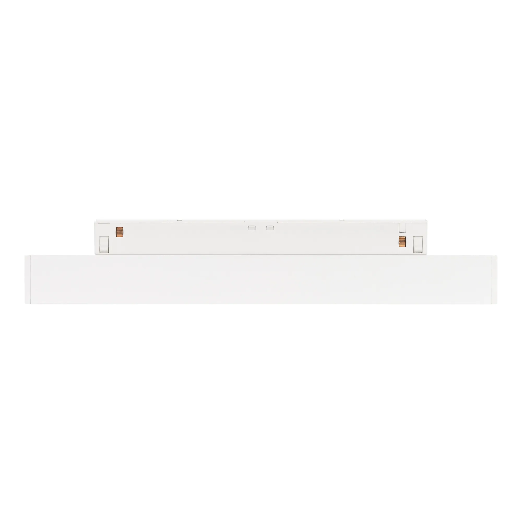 Светильник для магнитных треков MAG-ORIENT шириной 26 мм с управлением DALI. Мощность 8 Вт, св. поток 656 лм, 82 лм/Вт, теплый 3000 K, CRI>90, угол 100°, напряжение питания 48 В. Белый прямоугольный корпус из металл, экран поликарбонат, степень защиты IP20. Размер: длина 235 мм, ширина 22 мм, высота 42 мм. Монтаж на трек MAG-ORIENT. Пульсация <1%.