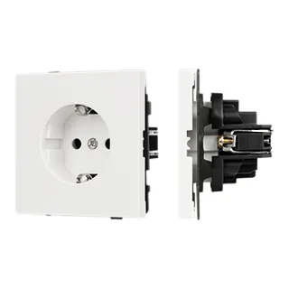 Механизм розетки с заземлением на 1 пост. Цвет - белый, с Soft-Touch покрытием. Без фронтальной рамки. Уровень пылевлагозащиты IP20. Розетка устанавливается в стандартный подрозетник круглого сечения диаметром 60мм.