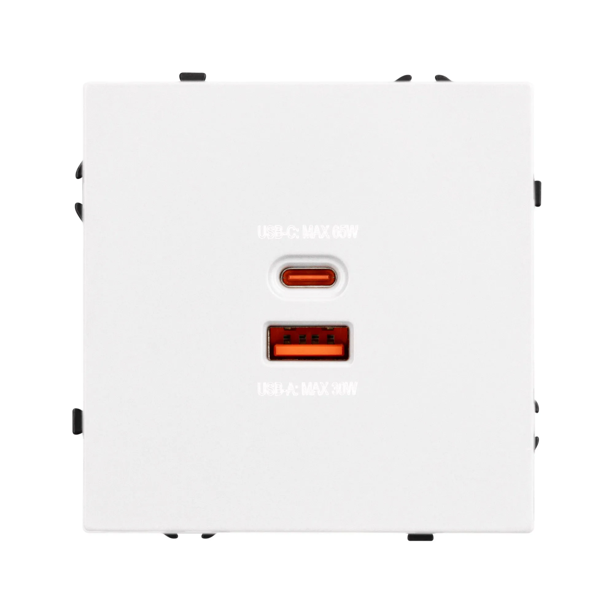 Механизм розетки с быстрой USB зарядкой на 2 порта. Цвет - белый, с Soft-Touch покрытием. Без фронтальной рамки. Уровень пылевлагозащиты IP20. Тип подключаемого разъема - USB Type A + Type C. Устанавливается в стандартный подрозетник круглого сечения диаметром 60мм.