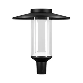 Поставка под заказ от 5 шт. Венчающий светодиодный светильник. Мощность 50 Вт, св. поток 5700 лм, 115 лм/Вт, дневной 4000 K, CRI>80, угол 130°, напряжение питания 230 В. Черный корпус из алюминия, экран закаленное стекло, степень защиты IP65. Размер: диаметр 550 мм, высота 640 мм. Монтаж на вертикальную опору диаметром 76 мм.