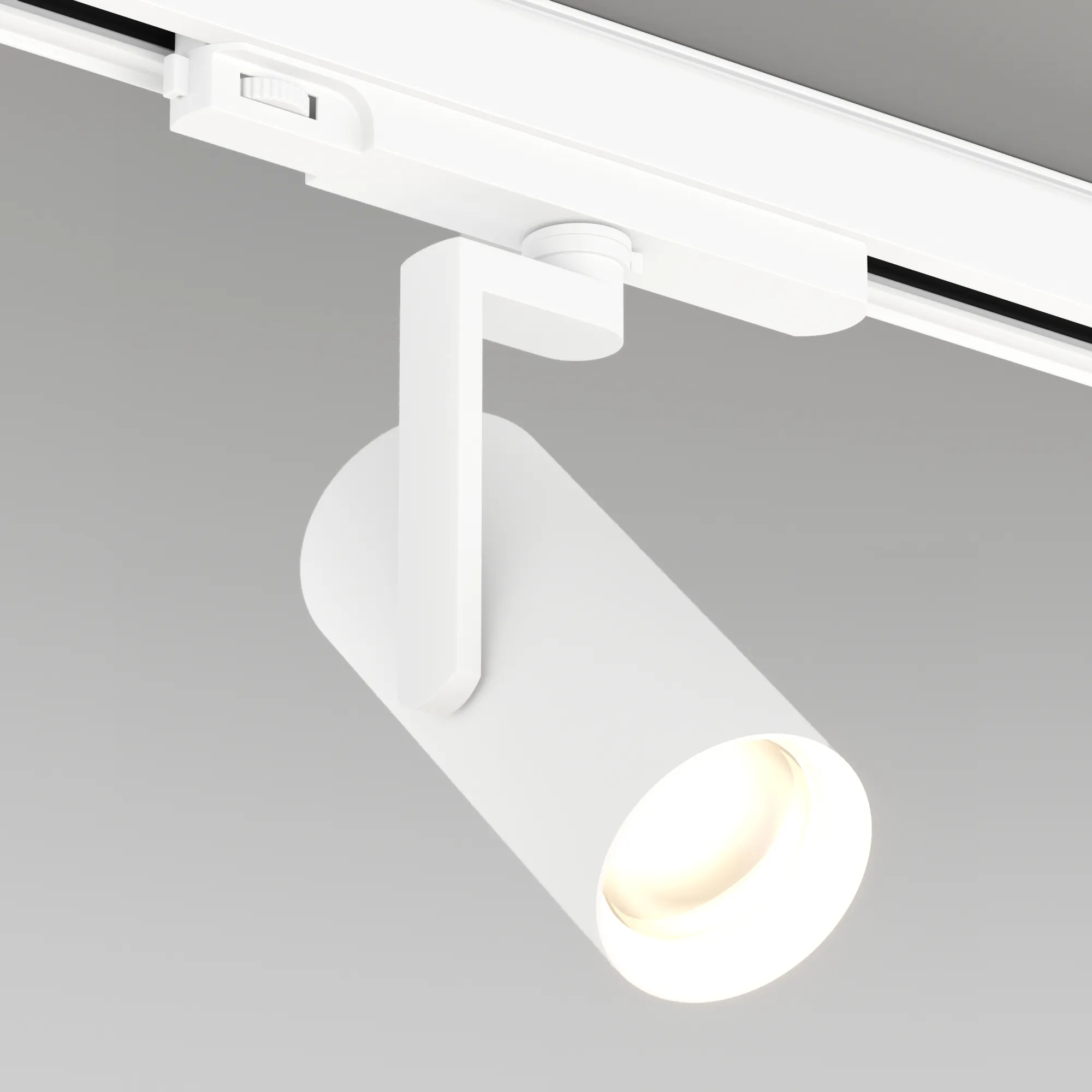 Светильник для треков/шин 4 провода, 18Вт. Управление и изменение цветовой температуры по протоколу DALI. Цвет свечения меняется в диапазоне 2700К - 4000К, световой поток при 2700К - 1120лм, при 4000К - 1300лм, 62лм/Вт, угол 20°, CRI>95. Корпус круглый, алюминий, цвет белый, IP20. Размеры Ø65x190x220 мм. Входное напряжение AC220-240V, мощность 18Вт. Драйвер встроенный (8-40В, 450мА), пульсация <0.3%
