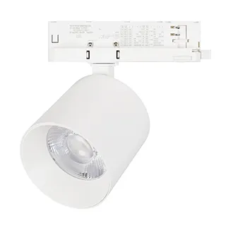 Светильник для трехфазных треков, 36 Вт с управлением TRIAC. Цвет свечения ДНЕВНОЙ 4000K, световой поток 3200 лм, угол 50°, CRI>90. Корпус круглый, металл, цвет белый, IP20. Размеры Ø100x93 мм. Входное напряжение AC220-240V. Драйвер встроенный 9-40В (300 - 1050мА), 50/60Гц, максимальная мощность 42 Вт.