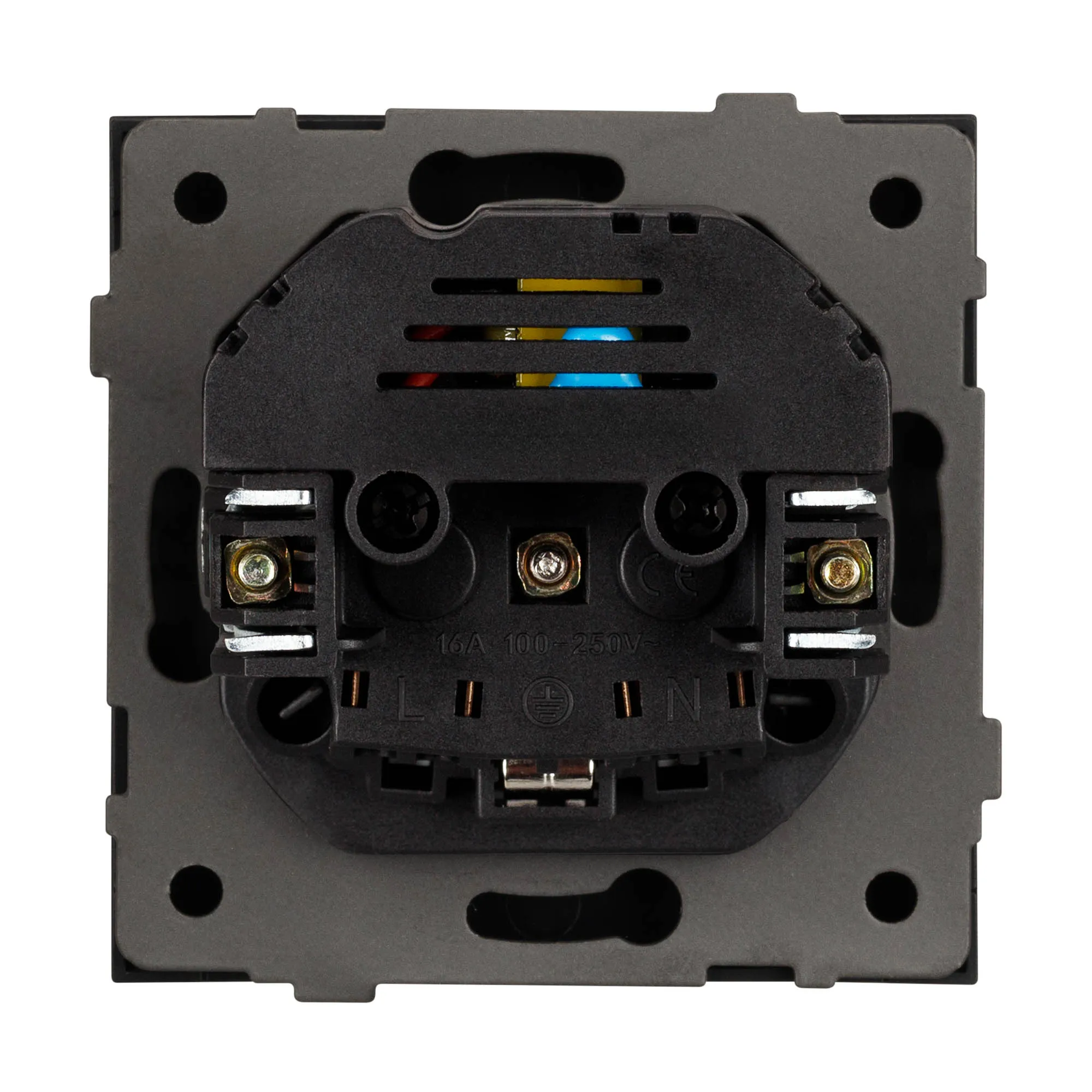 Механизм розетки с заземлением 1 пост 2 USB Type A+C порта. Цвет - серый. Без фронтальной рамки. Уровень пылевлагозащиты IP20. Розетка устанавливается в стандартный подрозетник круглого сечения диаметром 60мм.
