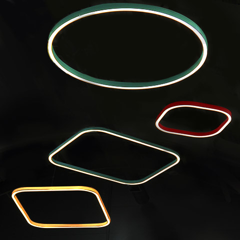 Разнообразные варианты формы светильника, чаще всего это- L-образные, T-образные, Y-образные, Z-образные, H-образные, треугольные, четырехугольные, шестиугольные профильные светильники. В некоторых случаях возможно модульное исполнение этих фигур для дальнейшего соединения между собой и создания комплекса фигур, например «соты» из Y-образных светильников.