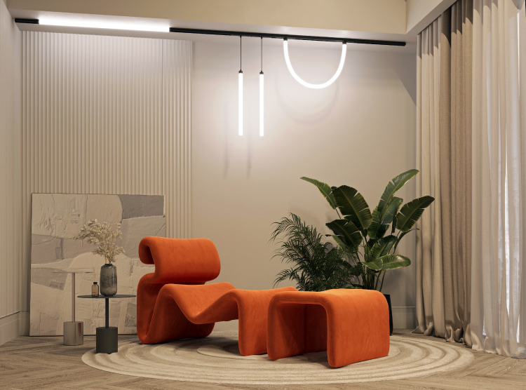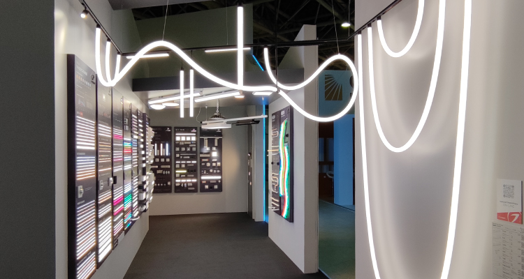 Из светильников можно создавать оригинальные формы: круги и спирали, скрещенные линии и мягкие овалы, волнообразные конструкции. С помощью поворотных коннекторов на 240° возможно менять положение гибких световых трубок в общей конструкции трека и создавать новые решения. Увеличивая или уменьшая количество неоновых трубок в системе, можно регулировать световой поток. Широкая вариативность открывает полную свободу творчества для дизайнеров.