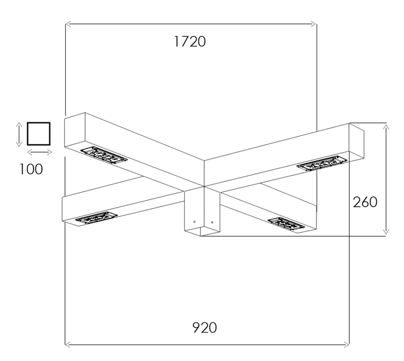 USAY-3-02-120 L1720 B1720 H260 120 W 33276 lm 28200 lm 235 lm/w 0,411м³ 66,3 48