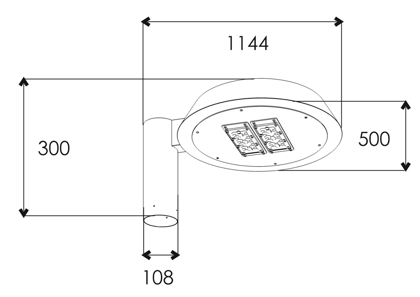| USAN-9-03-060 | L1144 B500 H300 | 60 W | 9982 lm | 8460 lm | 141 lm/w | 0,0582м³ | 17,8 | 24 |