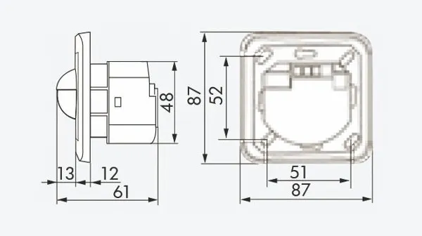 - Габариты Д 87 x Ш 87 x В 61 мм