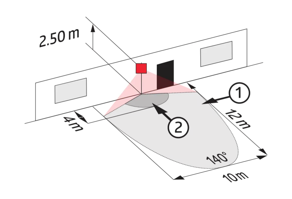 Зона обнаружения: горизонтальный 140° (настенный монтаж)