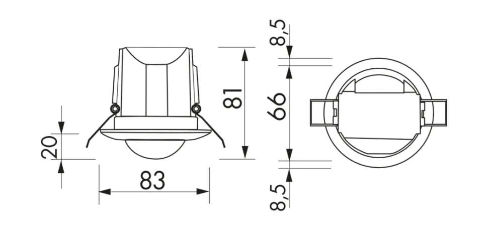 Зона обнаружения: горизонтальный 360° (потолочный монтаж)