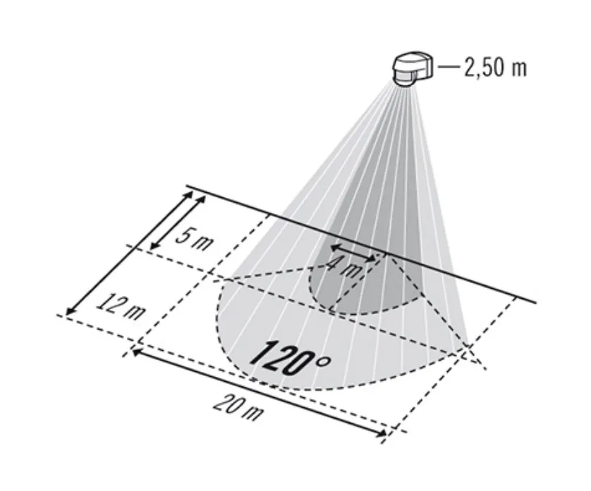 - Датчик движения с углом охвата 120° для удобного включения освещения