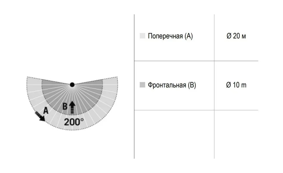 Угол обнаружения 200°, датчик с горизонтальным вращением +/- 90°