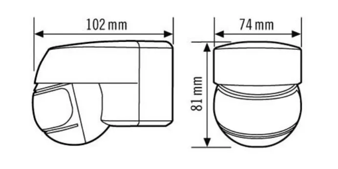 • Регулировка диапазона обнаружения и дальности действия с помощью поворачивающейся и наклоняемой сферической головки
