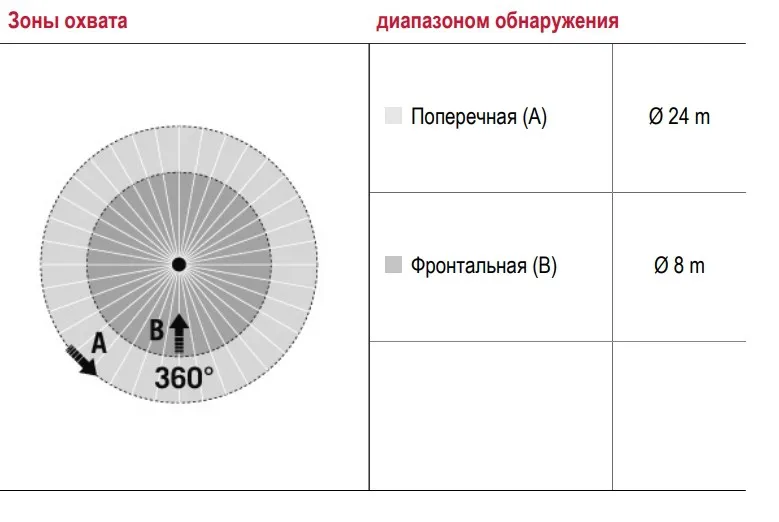 • Дальность действия до 24 м в диаметре при рекомендованной монтажной высоте 3 м, для установки в больших помещениях и проходах с отсутствием или очень малой долей естественного освещения