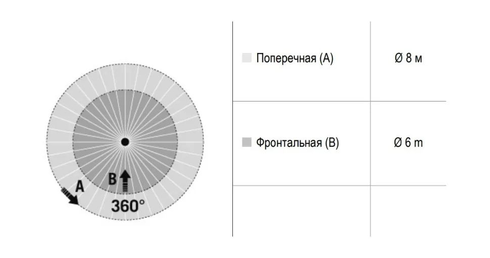 | диапазоном обнаружения Фронтально | Ø 6 м |