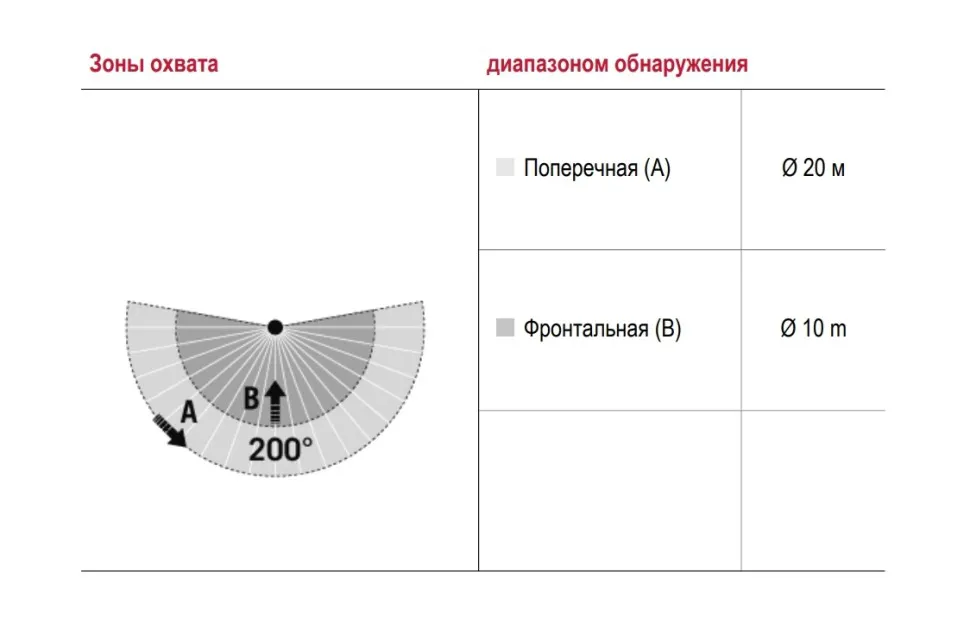 Угол обнаружения 200° (2 х 100°, регулируются отдельно)