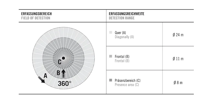 | Дальность обнаружения по диагонали | Ø 24 m |