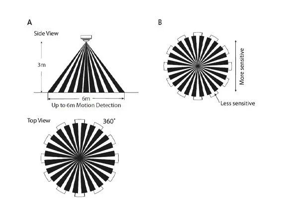 Датчик движения talis 360 E mini с дальностью обнаружения 360° работает по принципу пассивных инфракрасных датчиков (PIR-датчиков).