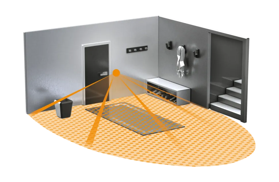 Большие входные зоны перед зданиями с архитектурными требованиями особенно выигрывают от автоматического выключателя света, который эффективно показывает путь ночным посетителям или прохожим. Дизайн также очень важен: датчик - плоский и прекрасно вписывается на стене. Плюс у него есть множество индивидуальных настроек. Например, угол обнаружения и диапазон могут быть гибко адаптированы к соответствующему местоположению.