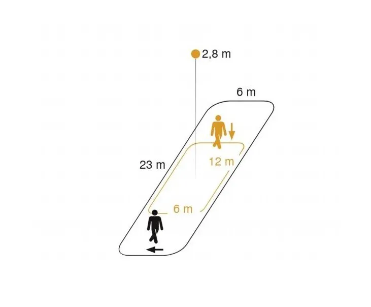 Проходы и длинные коридоры предъявляют особые требования к характеристикам датчиков. Зона обнаружения датчика должна быть узкой, но длинной. Только так минимальное количество датчиков может покрыть участки максимально возможной длины. Испытанный и проверенный снова и снова, IS 345 является специалистом для внутреннего применения этого типа. Он специально разработан для обнаружения в коридорах и имеет угол раскрытия 45 °. Это означает, что он может наблюдать за площадью до 23 х 6 метров по касательной.