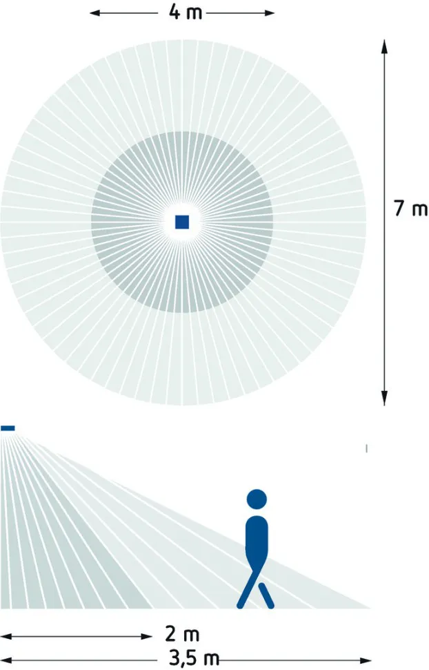 | Зона обнаружения | 38 m² (ø 7 m | 360°) |