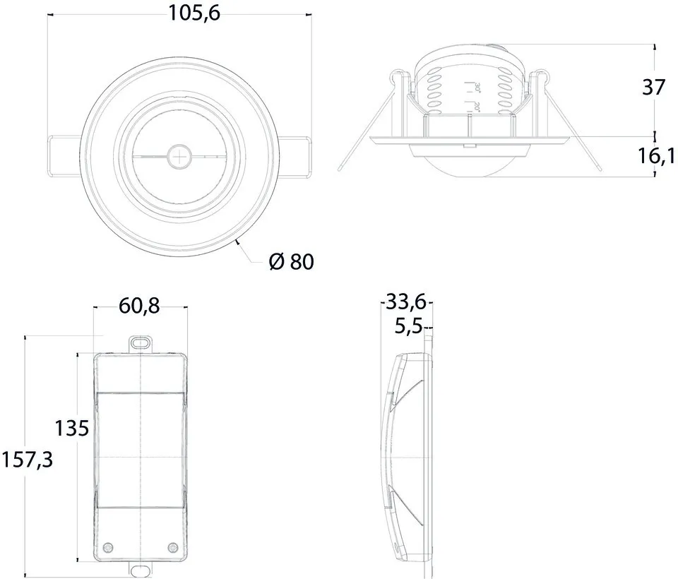 | Зона обнаружения | 38 м² (ø 7 m | 360°) |