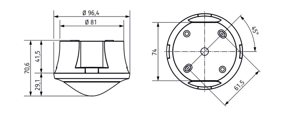 - Круговая зона обнаружения 360 °, диаметром до 9 м (64 м2 )