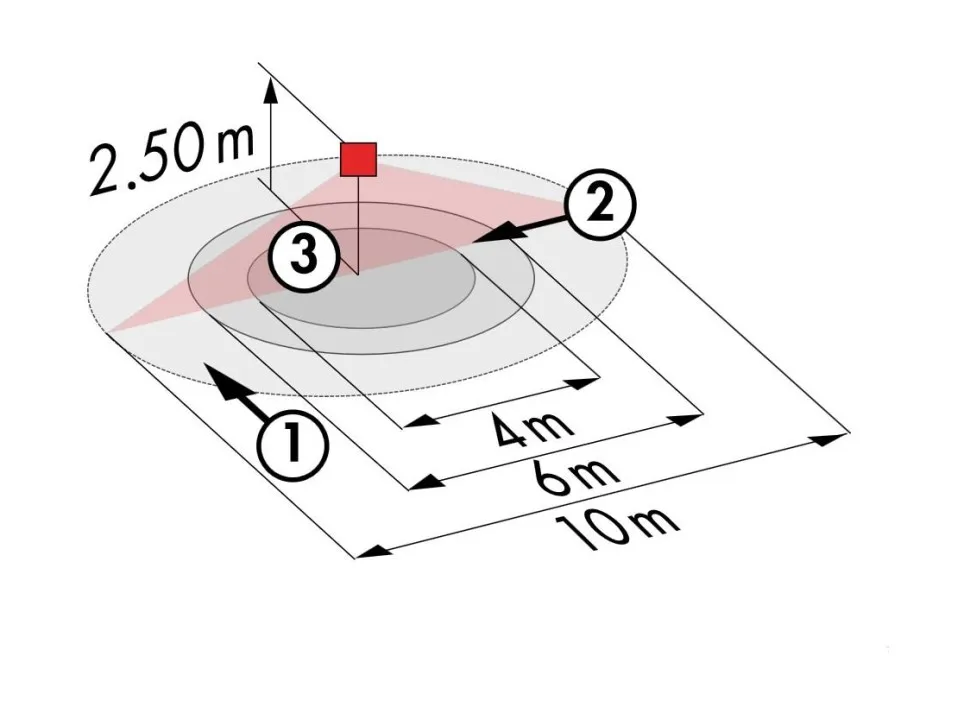 • Дальность действия перпендикулярно макс. Ø 10 м.