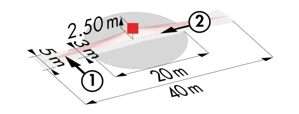 - Дальность действия перпендикулярно макс. Ø 40 м