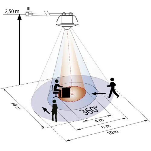 - Дистанционно управляемый потолочный мини датчик присутствия для внутреннего применения, в исполнении ведущего (Master) устройства, с круговым диапазоном обнаружения