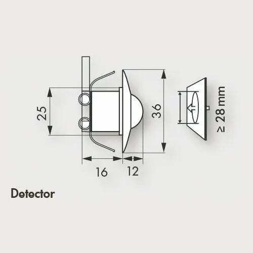 - Габариты Датчик: Ø 36 x В 28 мм. Силовая часть: Д 154 x Ш 38 x В 25 мм