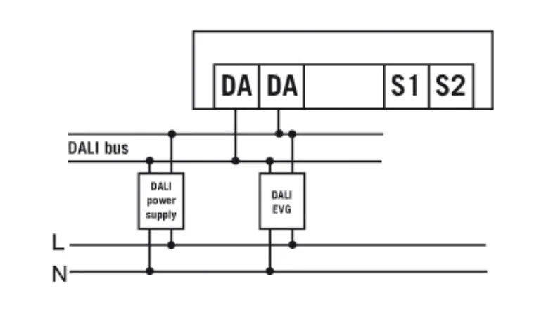 - Автоматическое управление ЭПРА DALI для поддержания уровня освещенности в зависимости от присутствия людей и интенсивности дневного света (с выходом DALI)