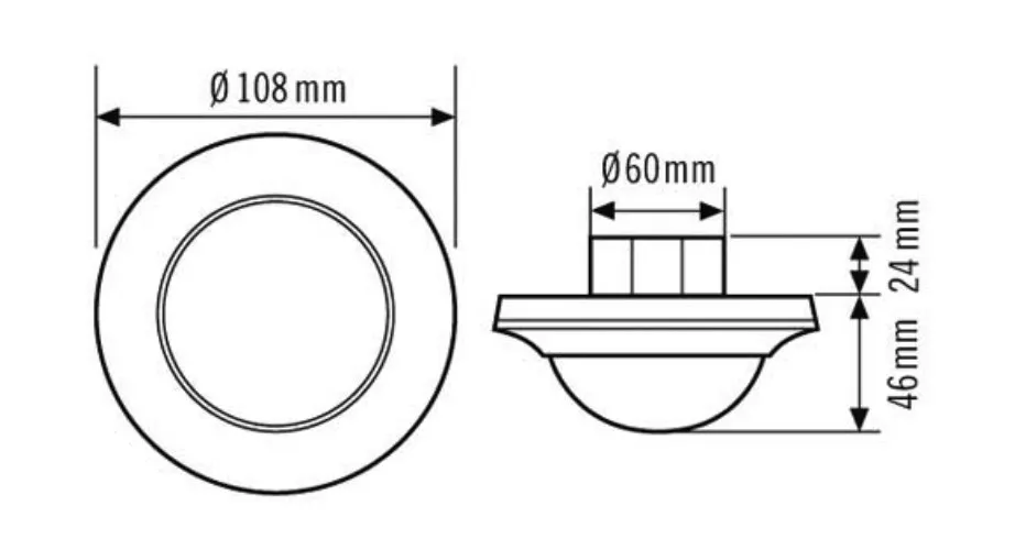 Монтажные размеры Глубина монтажа: 24 мм, Ø 60 мм