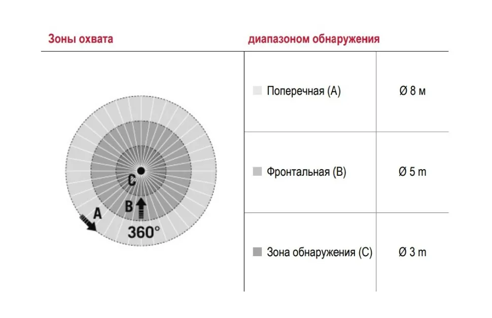 | диапазоном обнаружения Фронтально | Ø 5 м |