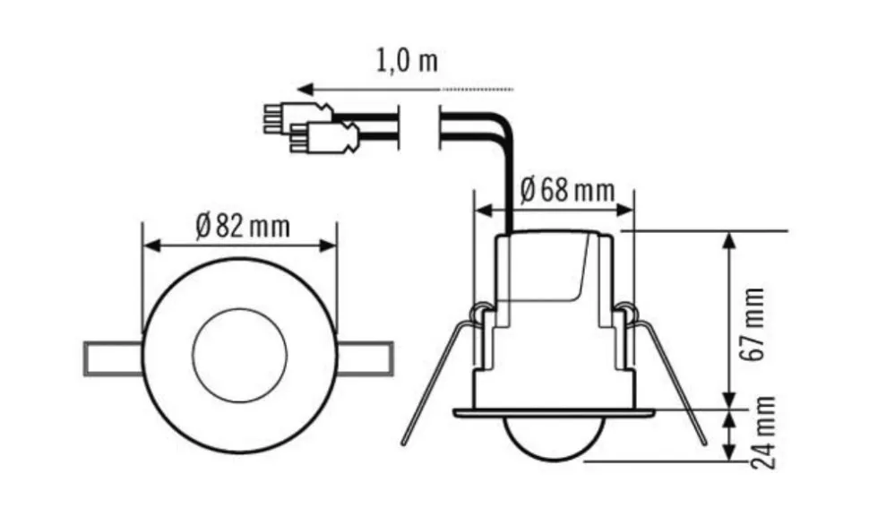 Монтажные размеры Глубина монтажа: 67 мм, Ø 68 мм
