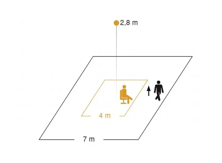 Имея 1760 коммутационных зон, он устанавливает новые стандарты качества обнаружения, особенно в небольших офисах, складских помещениях, служебных помещениях, подсобных помещениях и умывальных. Зона обнаружения квадрата также может быть масштабирована механически без потери качества - возможность, которая является эксклюзивной для STEINEL Professional Presence Control PRO.