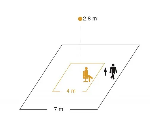 Имея 1760 коммутационных зон, он устанавливает новые стандарты качества обнаружения, особенно в небольших офисах, складских помещениях, служебных помещениях, подсобных помещениях и умывальных. Зона обнаружения квадрата также может быть масштабирована механически без потери качества - возможность, которая является эксклюзивной для STEINEL Professional Presence Control PRO.