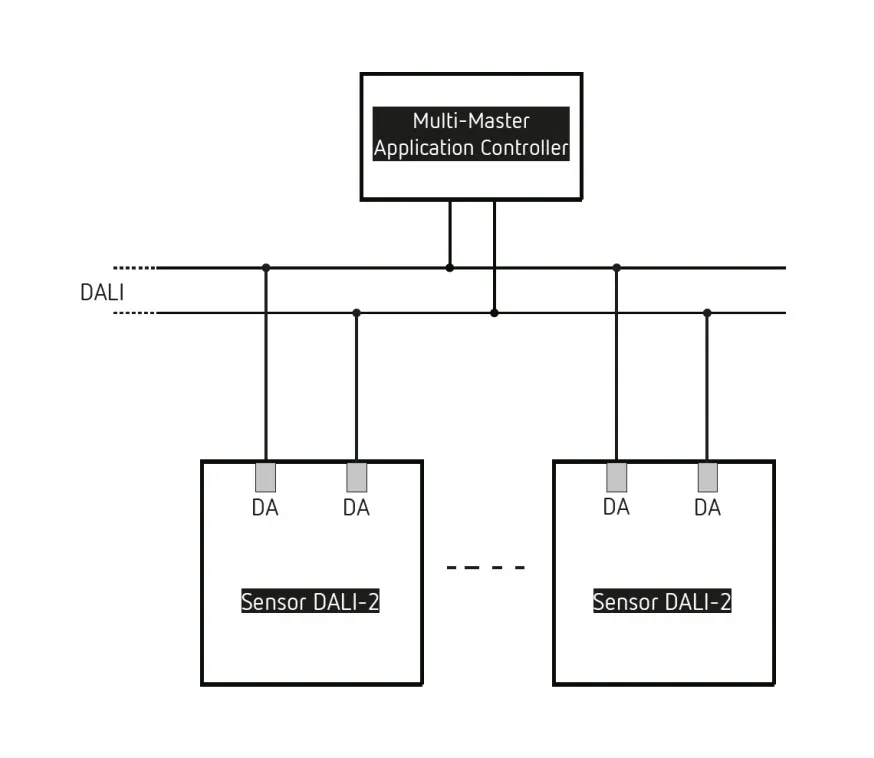 • Это устройство предоставляет информацию о присутствии и яркости в виде телеграммы DALI в соответствии с IEC 62386, часть 303/304.