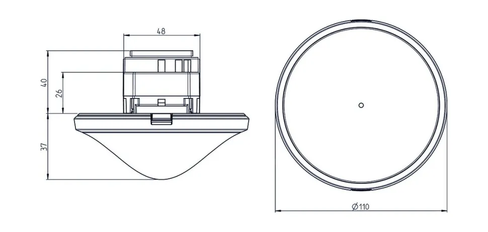 - Пассивный инфракрасный датчик присутствия для скрытого монтажа на потолке