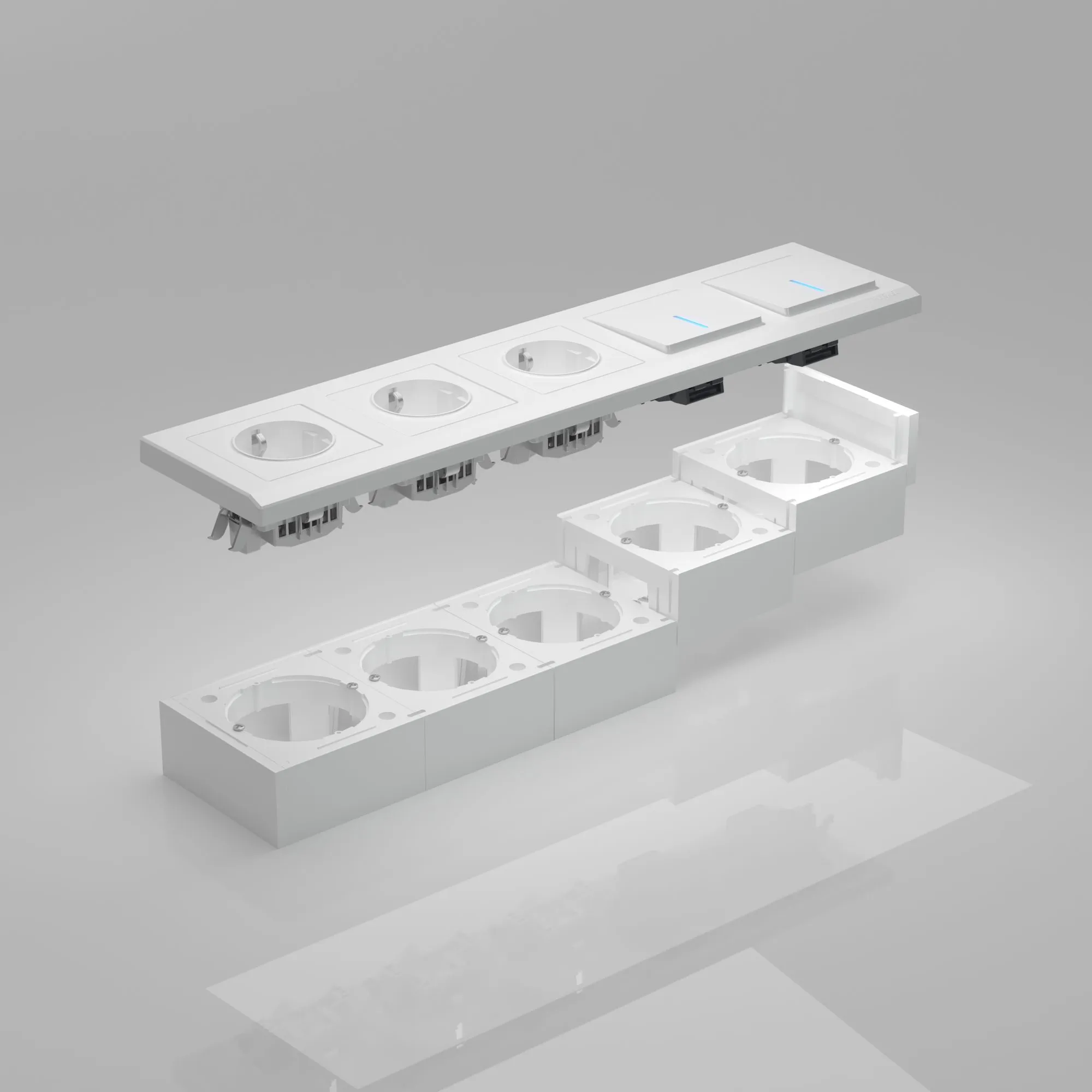 Коробки для накладного монтажа — это не только универсальное решение в установке встраиваемых электроустановочных изделий, но и лаконичный элемент дизайна в современных интерьерах. Накладные коробки можно установить на любую поверхность, а модульная конструкция позволяет собрать необходимое количество постов, соединив блоки между собой. Установочные коробки совместимы со встраиваемыми механизмами и рамками Werkel (кроме коллекции рамок Acrylic), а популярные цветовые решения позволяют создавать множество стилевых и цветовых комбинаций.