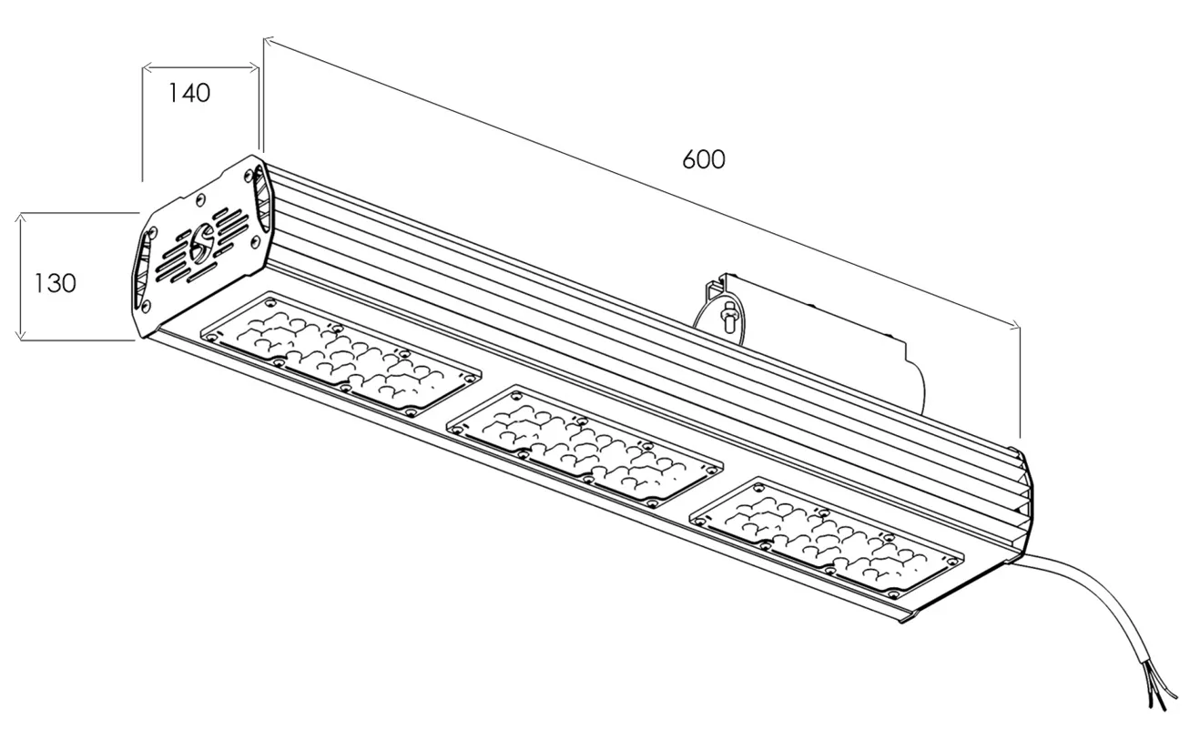 | USLV-3-01-100 | L600 B140 H130 | 100 W | 17110 | 14500 lm | 145 lm/w | 0,0109м³ | 4,2 | 36 |