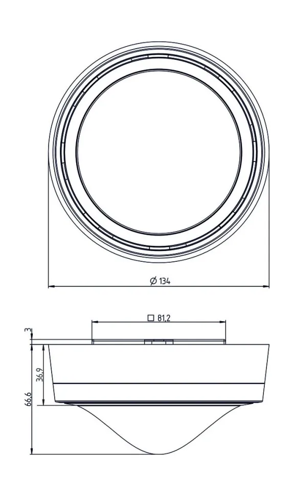 • Квадратная зона обнаружения 360°, 9 x 9 м (81 кв.м ) при высоте установки 3 м