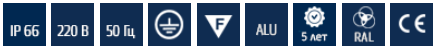 Корпус светильника произведен из алюминия и имеет степень защиты IP66 от проникновения пыли и влаги.