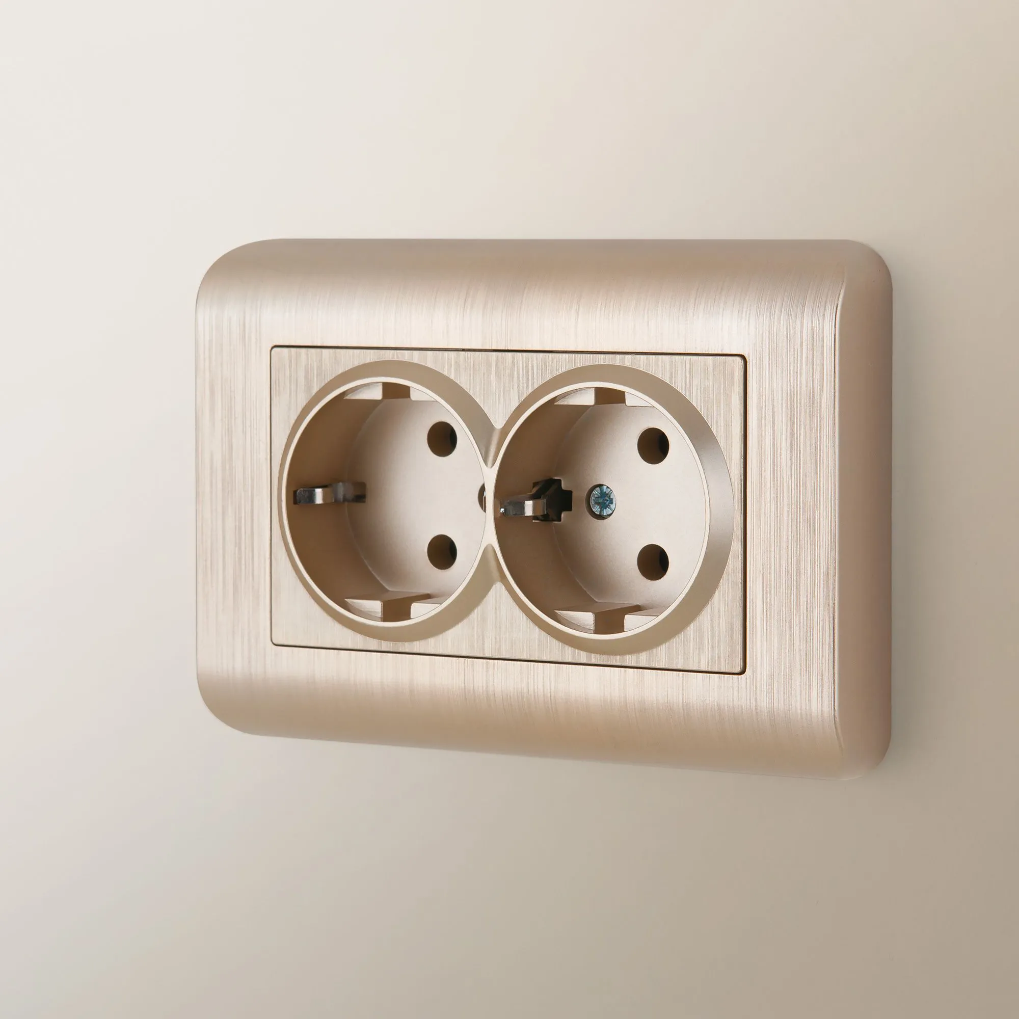 Розетка двойная с заземлением (шампань рифленый) W1172010