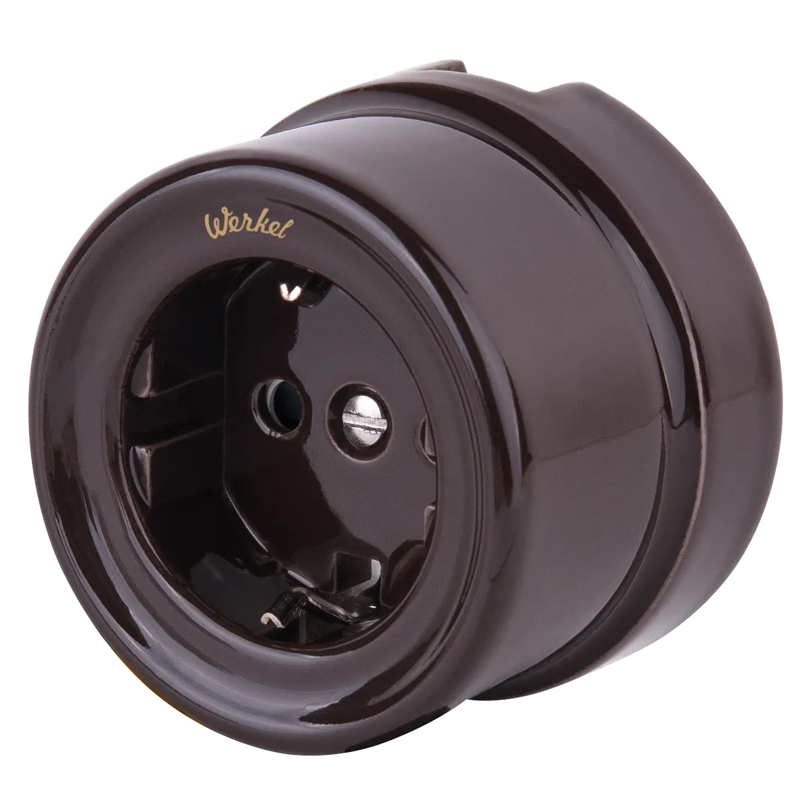 Розетка с заземлением (коричневый) Ретро WL18-03-01