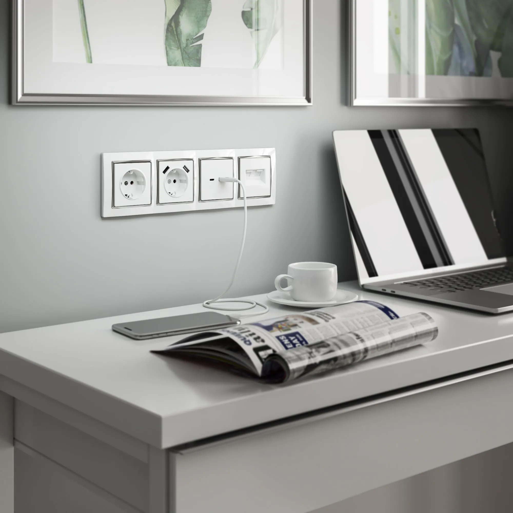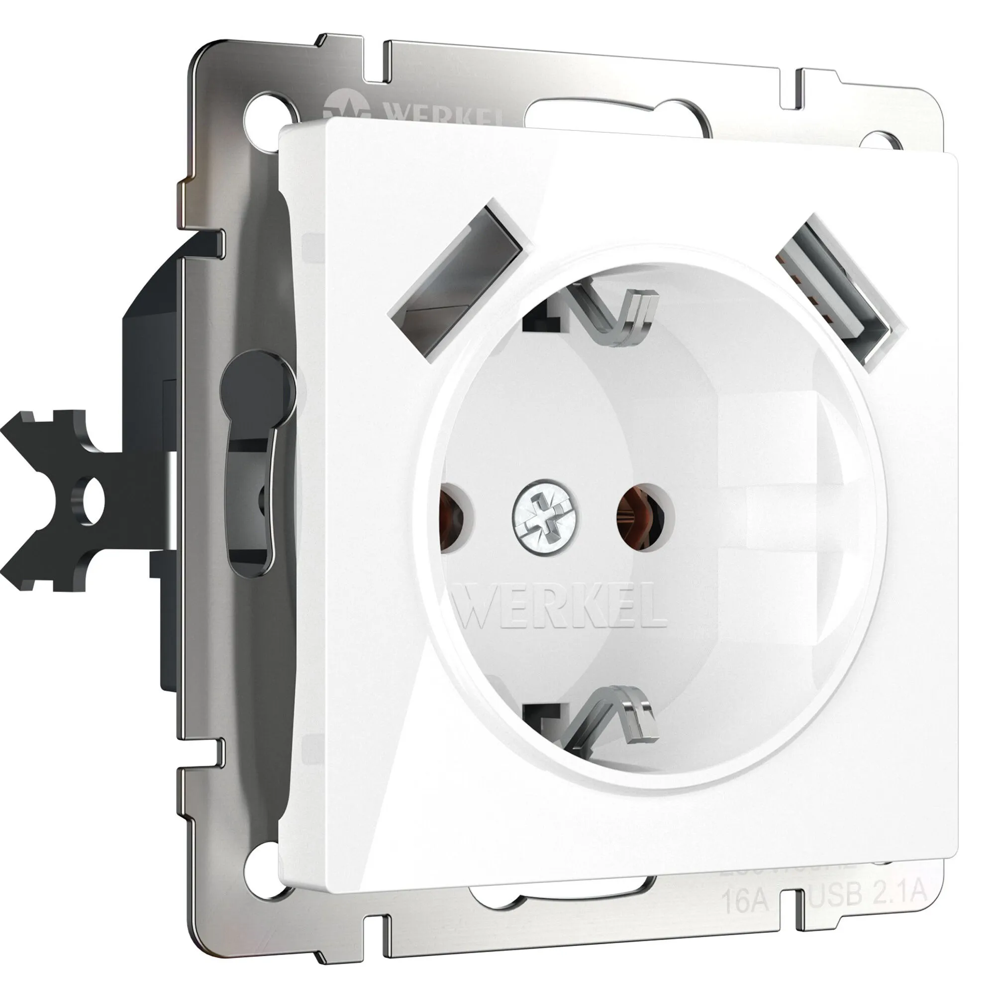 Розетка с заземлением, шторками и USBх2 (белая) W1171501