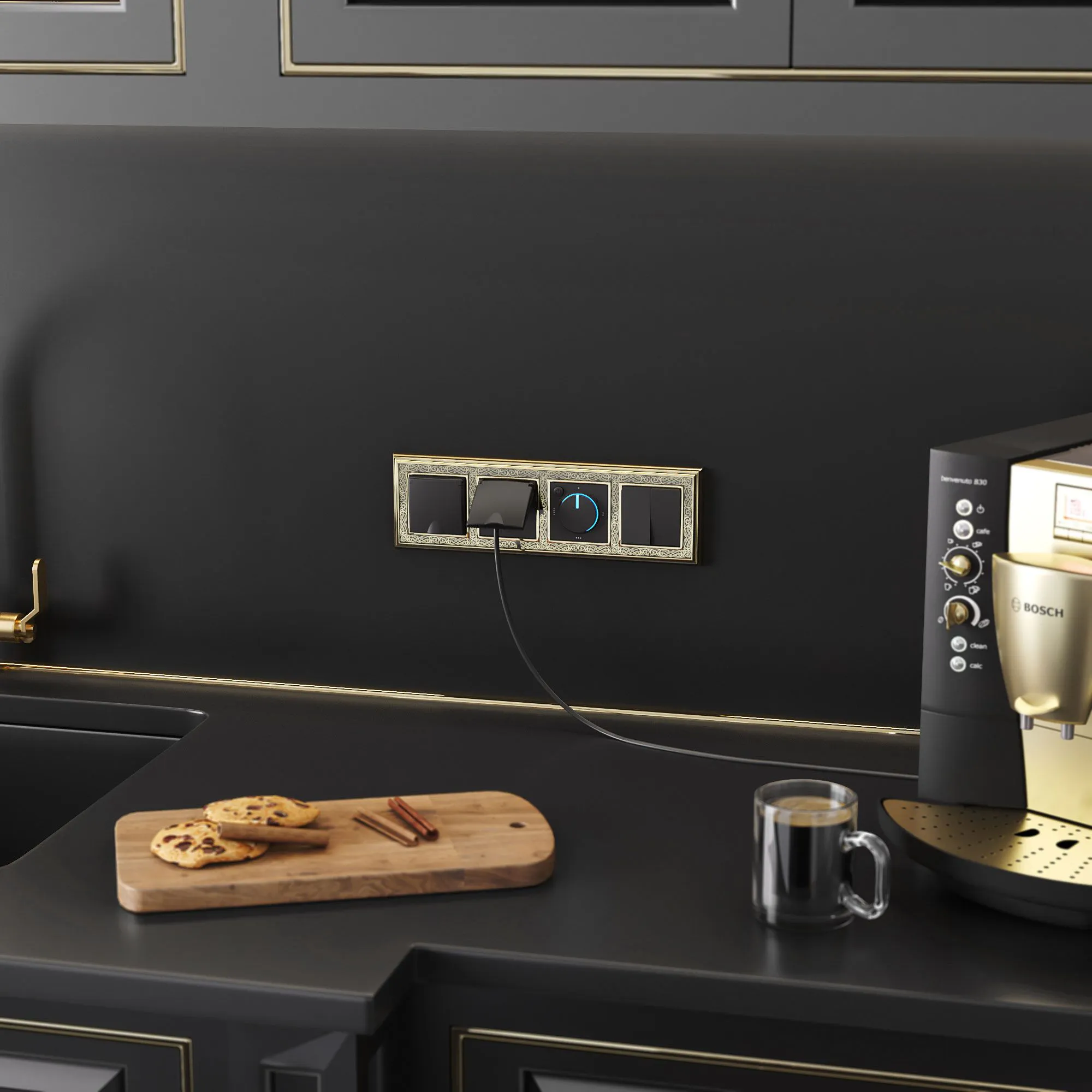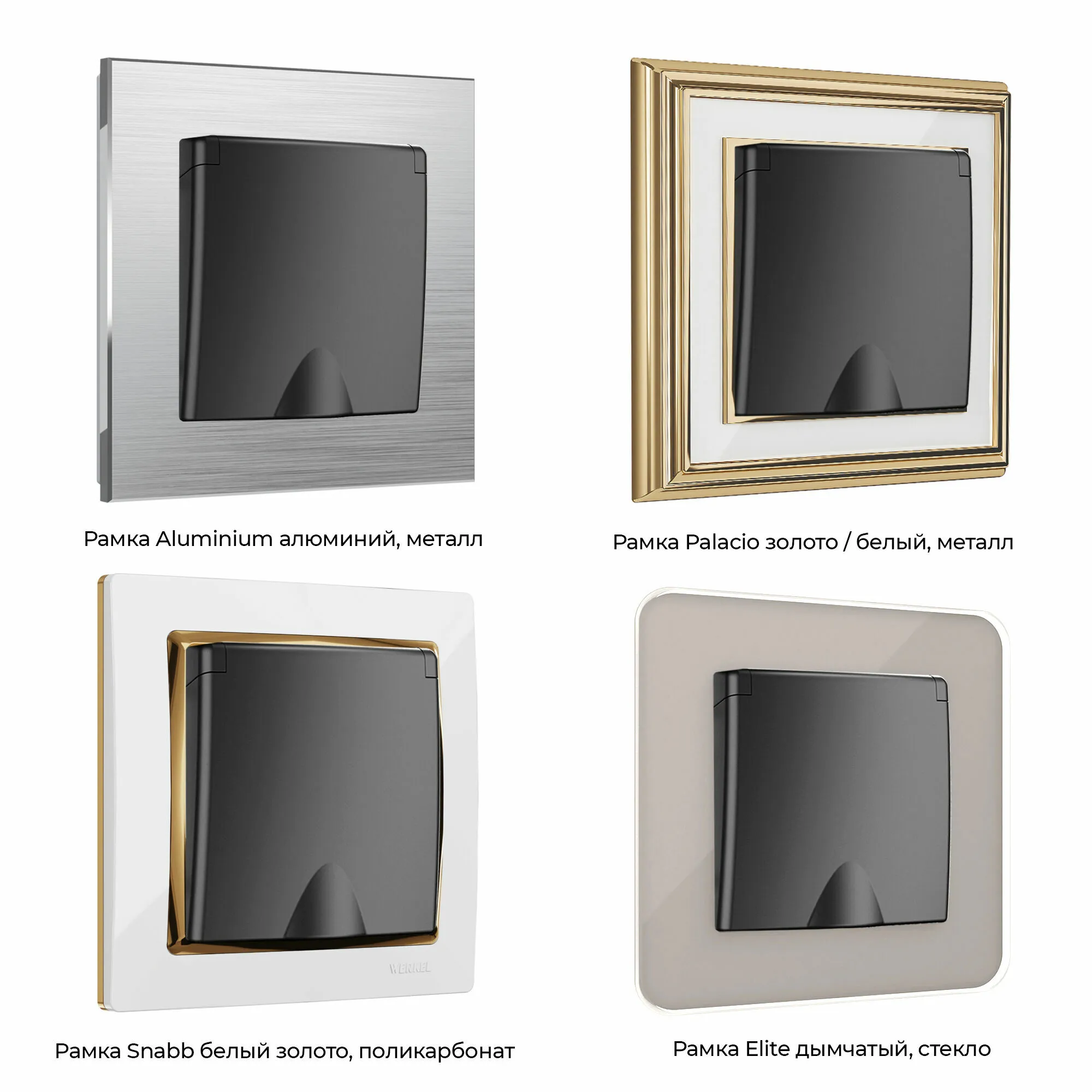 Розетка влагозащ. с зазем. с защит. крышкой и шторками (черный матовый) W1171208